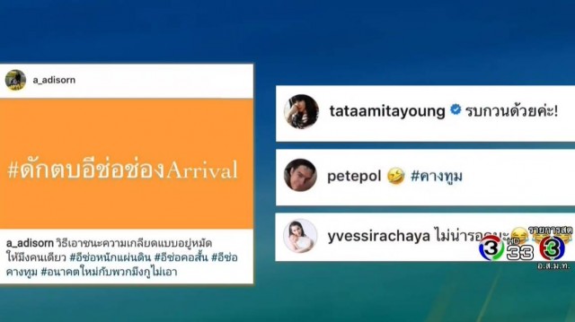 ดราม่า ทาทา ยัง นักร้องสาวชื่อดัง ที่เข้าไปคอมเม้นท์อินสตาแกรมที่ชื่อว่า a_adisorn ได้โพสต์ข้อความว่า #ดักตบอีช่อช่องArrival แล้วมีไอจีของทาทายัง ที่ใช้ชื่อว่า tataamitayoung เข้าไปกดถูกใจ และเข้าไปแสดงความเห็นว่า “รบกวนด้วยค่ะ!” จนถูกพูดถึงอย่างมากบนโลกออนไลน์ และมีการวิจารณ์ว่านักร้องดังสนับสนุนให้ใช้ความรุนแรง จน #ทาทายัง ขึ้นอันดับ 1 ของเทรนด์ทวิตเตอร์ประเทศไทย