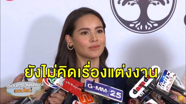 และ นักข่าวก็ถามว่าหลังจากสวีทหวาน เปิดตัวกันขนาดนี้ มีคุยถึงเรื่องแต่งงานกันไหม โดย ‘ญาญ่า’ ก็บอวก่าถูกถามเยอะมากๆ แต่ก็ยังไม่ได้คิด เพราะมีอีกหลายอย่างที่จะต้องทำ ยังไม่พร้อมเร็วๆนี้ และก็ไม่ได้ตั้งเป้าไว้ด้วยว่าต้องเมื่อไหร่