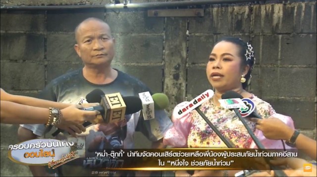 หม่ำ – ตุ๊กกี้ นำทีมศิลปินจัดคอนเสิร์ตช่วยเหลือพี่น้องผู้ประสบภัยน้ำท่วมภาคอีสานกับคอนเสิร์ต “หนึ่งใจ ช่วยภัยน้ำท่วม” พร้อมวอนโจรอย่าไปขโมยสร้างความเดือดร้อนเพิ่ม