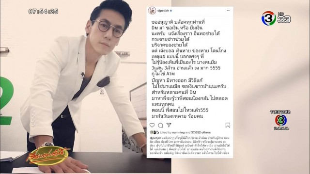 ด้านดีเจเพชรจ้า ก็โพสต์อินสตาแกรมส่วนตัวประกาศงดให้ใครยืมเงินเช่นเดียวกัน ระบุ "ขออนุญาตฺ บล็อคทุกท่านที่ DM มาขอเงิน หรือ ยืมเงินนะครับ แจ้งเรื่องราว อื่นพอช่วยได้ กระจายข่าวช่วยได้ บริจาคของช่วยได้ แต่เจ้งบอล เงินหาย ของหาย โดนโกง เหตุผลแบบนี้ บอกตรงๆ พี่ไม่รู้เห็นพี่เป็นอะไร