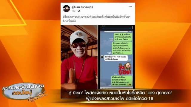 'ตู้ ดิเรก' โพสต์ข่าว หมอยื้อชีวิต 'แดง เพรสซิเดนท์' ผู้แต่งเพลงสาวบางโพ ติดโควิด-19 กลับมาได้