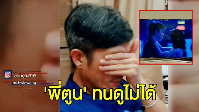 ส่วนอีกฝั่งร็อคเกอร์ดัง ตูน บอดี้แสลม ถึงกับทนดูไม่ได้ ต้องเอามือปิดตามเอาไว้ เมื่อสาวก้อย รัชวิน คู่หมั้นเปิดละครให้ดูฉากนี้