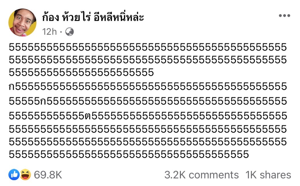 ขณะที่ ‘ก้อง ห้วยไร่’ ได้ออกมาโพสต์ เลข 5 เยอะมาก แต่ภายใต้เลข 5 มีคำว่า “ก ก ต” ซ่อนอยู่