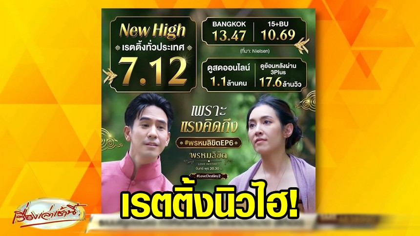 แท็กที่เกี่ยวข้อง พรหมลิขิต ,ละครช่อง3 ,เรตติ้งสูงสุด