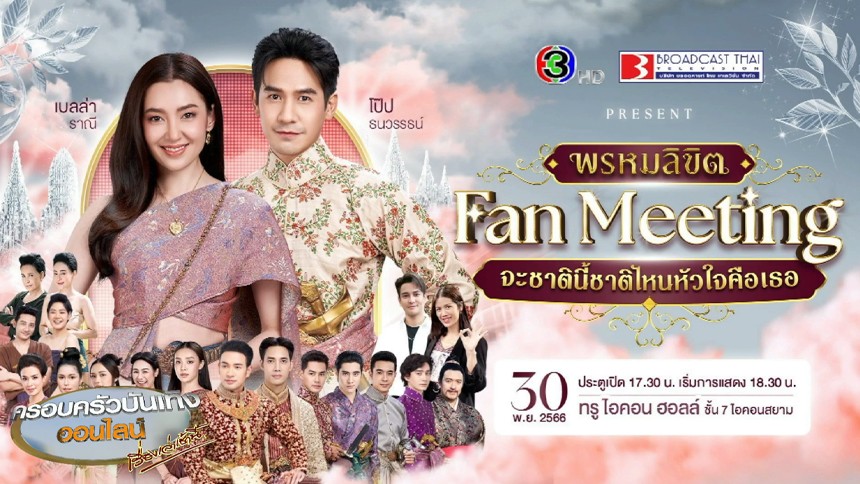 และส่วนใครที่อยากจะไปพบเจอกับทีมนักแสดงพรหมลิขิต กับกิจกรรมสุดพิเศษ “พรหมลิขิต FAN MEETING จะชาตินี้ชาติไหนหัวใจคือเธอ” ที่นักแสดงทั้ง 18 นำโดย ‘โป๊ป-ธนวรรธน์’ และ ‘เบลล่า-ราณี’ ที่มาพร้อมกับทัพนักแสดงจากละคร นำโดย เกรท-วรินทร, เด่นคุณ-งามเนตร, น้ำตาล-พิจักขณา, ชาย-ชาตโยดม, ซูซี่-สุษิรา, พีพี-ปุญญ์ปรีดี, ไต้ฝุ่น-กนกฉัตร, โอม-คณิน, ปีเตอร์แพน-ทัศน์พล, เพ็ชร-ฐกฤต, น้ำฟ้า-ธัญญภัสร์, ยิหวา-ปรียากานต์, จ๊ะจ๋า-แดนดาว, รอน-ภัทรภณ, แม่แอ๊ว-อำภา, จุ๊บแจง-วิมลพรรณ ที่ยกทัพมามอบความสุขสุดฟินให้กับออเจ้าทั้งหลายแบบเอ็กซ์คลูซีฟ
