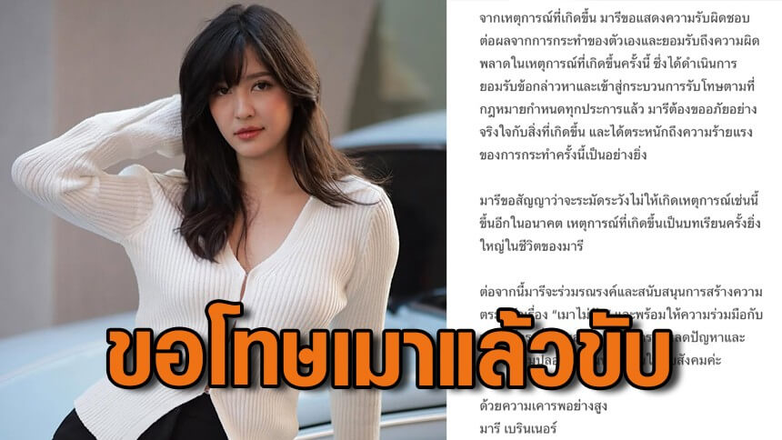“มารี” ขอโทษเมาแล้วขับ ยอมรับผิด สัญญาจะไม่ให้เกิดขึ้นอีก แจงความสัมพันธ์ “ไฮโซบอส”