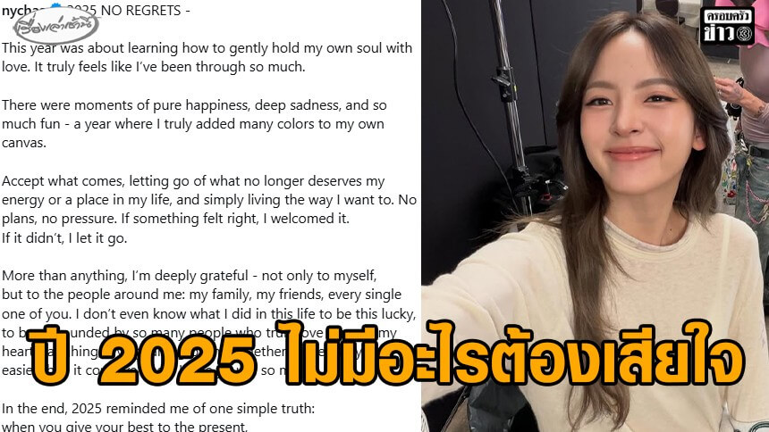 “ณิชา” สรุปชีวิตปี 2025 ไม่มีอะไรต้องเสียใจ เป็นปีแห่งการเรียนรู้ ปล่อยวางสิ่งที่ไม่คู่ควรอยู่ชีวิต