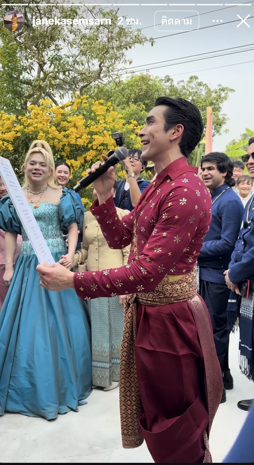 ก่อนที่หนุ่ม “ณเดชน์” จะยกกระดาษจับไมค์ ให้คำมั่น คำสัญญา เป็นภาษาอีสานว่า “ฮักเจ้าลืมผู้สาวทั้งแผ่นดิน บ่ให้ตาเหลียวเบิ่งไผ บ่ให้ใจไปฮักผู้ใด๋ ให้ฮักเมียผู้เดียว คือเก่า คือเก่าทุกมื้อออออออ ให้เห็นเมียคือคนงาม ที่สุดในโลก งามกว่าดาราทั้งโลก”