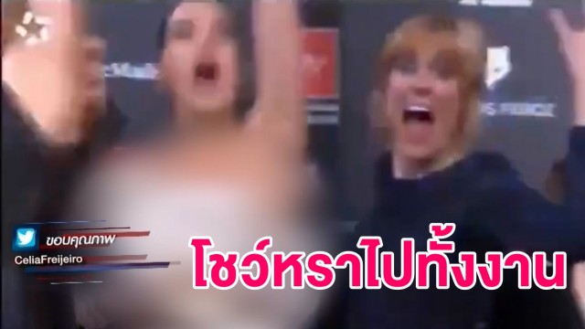 ตะลึงกันทั้งงาน 'เซเลีย เฟรเฮโร' นักแสดงสาวชาวสเปน ทำเกาะอกหลุดกลางงานประกาศรางวัล
