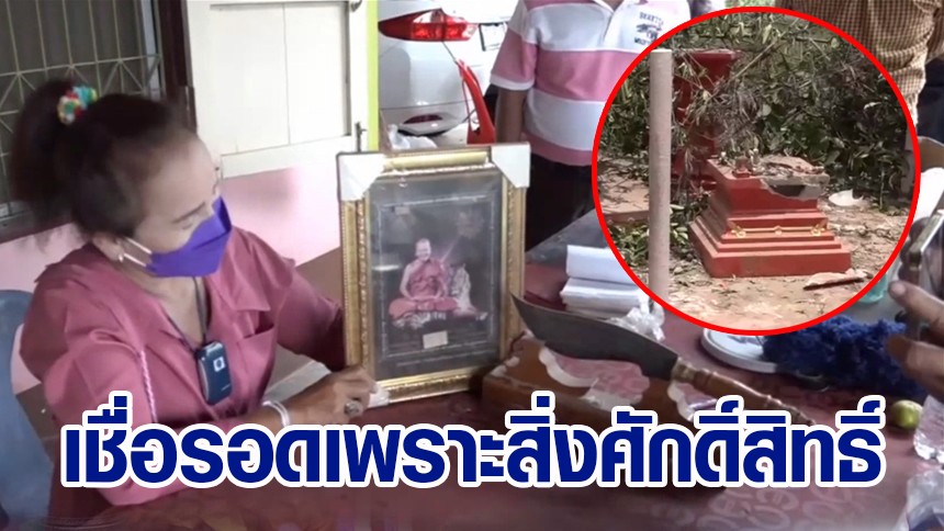 กระบะแหกโค้งพุ่งเข้ารั้วบ้าน ชนศาลพระภูมิพังยับ เจ้าของบ้านปลอดภัย เชื่อเพราะสิ่งศักดิ์สิทธิ์ที่บูชา