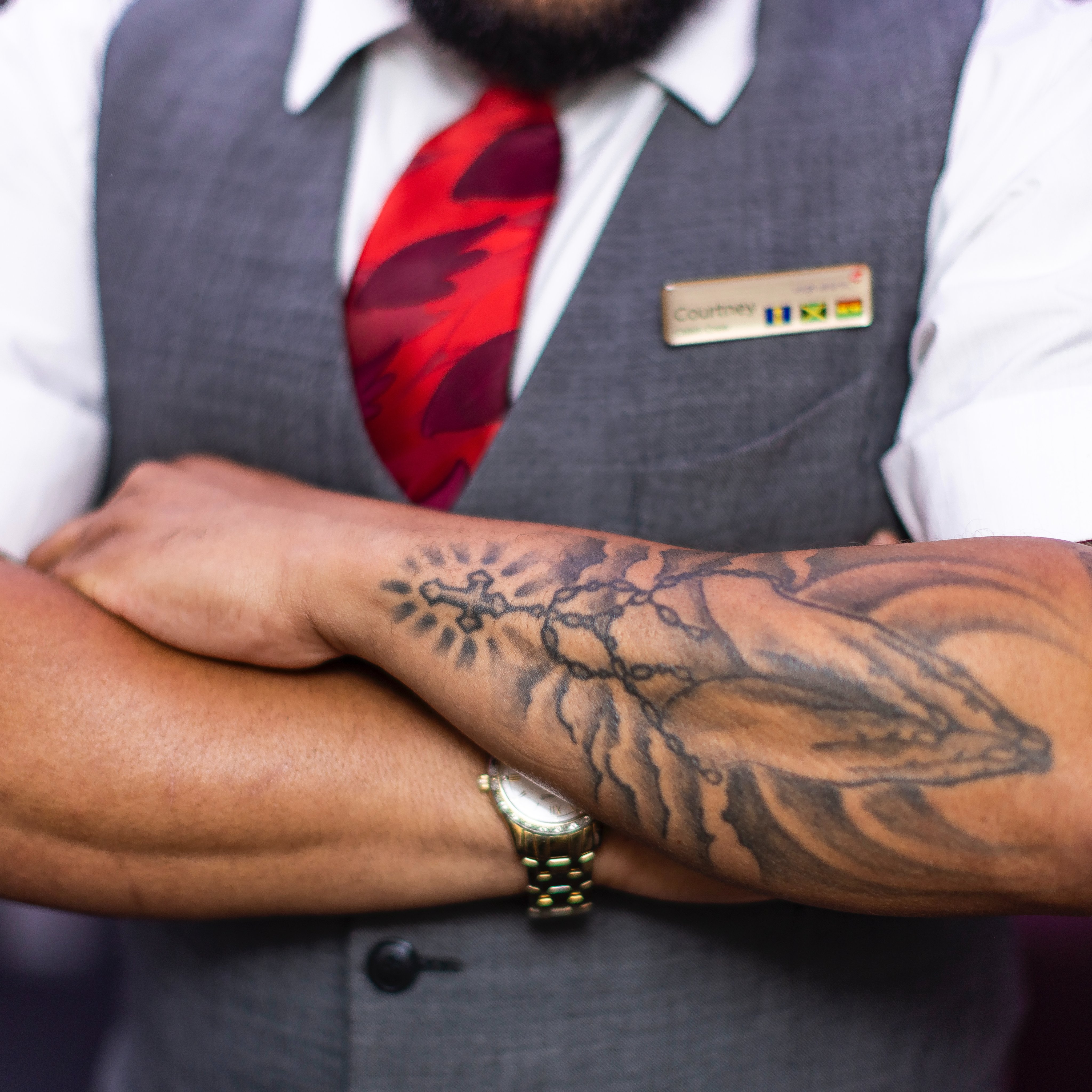 เมื่อพูดถึงรอยสัก เชื่อว่าล้านคนก็ล้านความคิด แต่จะมีความคิดชุดหนึ่ง ที่มักมองว่าคนทำงาน ‘สายบริการ’ ไม่ควรที่จะเปิดเผยรอยสักต่อหน้าผู้รับบริการ และนี่เองที่ทำให้ แอร์โฮสเตส สจ๊วต ต้องซ่อนรอยสักอันแสนสวยและน่าภาคภูมิใจ ไว้ในร่มผ้า
