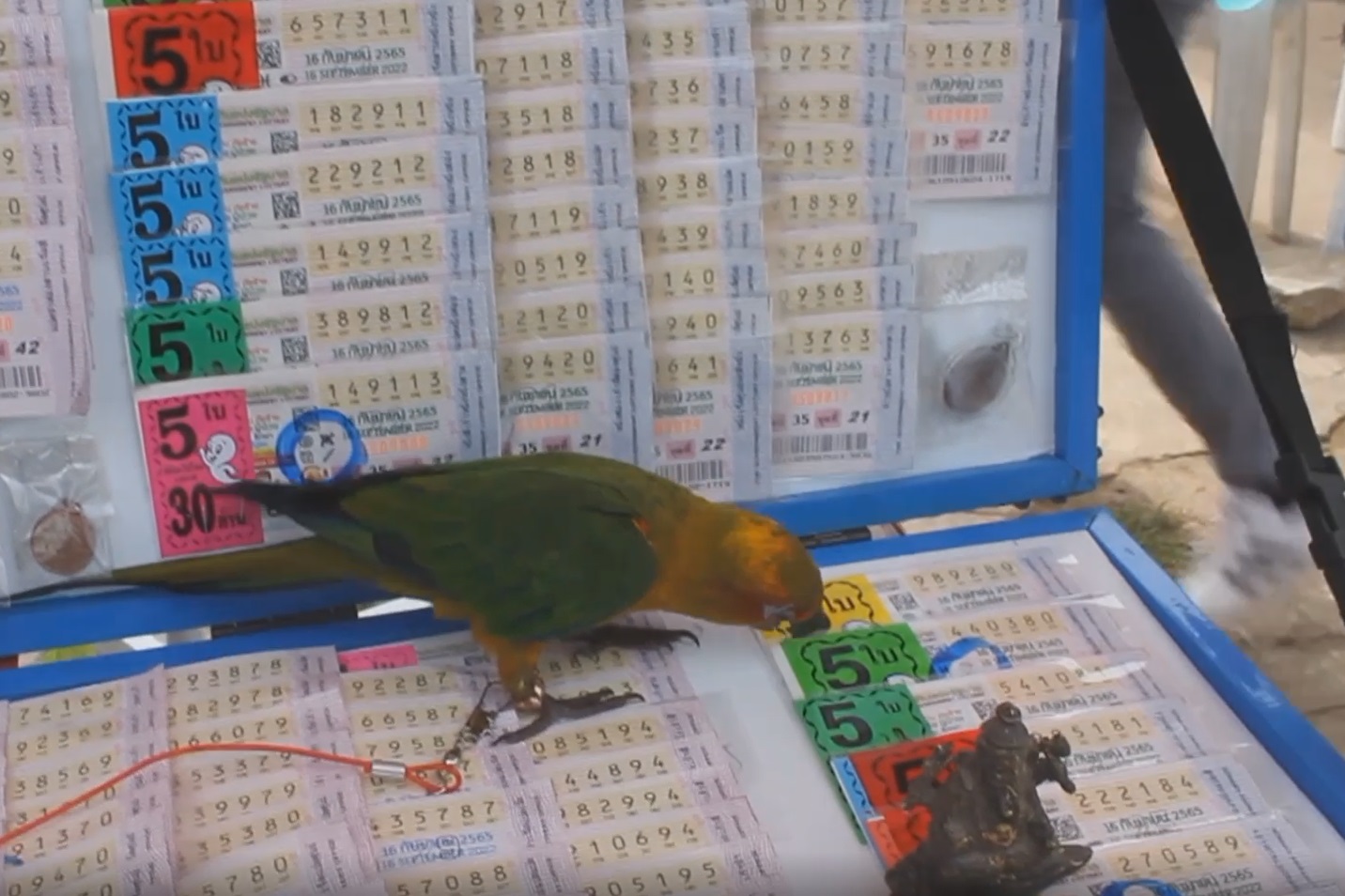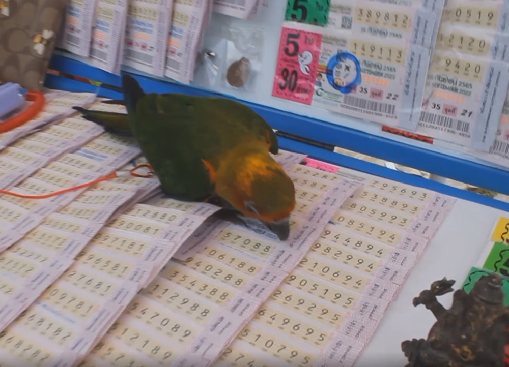 ไม่ธรรมดา! ‘เจ้ารวย’ นกแก้วแสนรู้ ช่วยขายลอตเตอรี่ ใช้ปากคาบพาถูกรางวัลมา 2 งวดติด