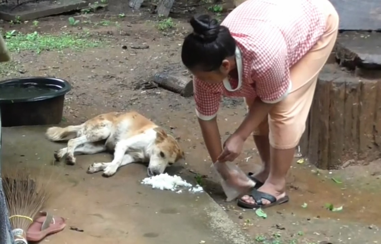 ตอนแรกนึกว่าคงจะตายแล้วเพราะเลือดออกมาก จึงได้อุ้มมานอนและหายามารักษาแบบตามมีตามเกิดเพราะอยู่บ้านนอก มันหายใจรวยรินและร้องด้วยความเจ็บปวดอยู่ตลอดเวลา จนทุกวันนี้แผลเริ่มเน่าและมีหนอนซอนไซ ตนและสามีเอายาสมุนไพรใส่รักษาแผลให้มัน พอเอายาสมุนไพรทามันก็จะร้องด้วยความเจ็บปวด ตนรู้สึกสงสารจับใจ แต่ก็ไม่รู้จะช่วยยังไง ในใจก็อยากจะพาไปรักษาที่โรงพยาบาลแต่คงต้องใช้เงินหลายหมื่นบาทดูจากสภาพบาดแผลแล้ว ซึ่งตนก็ไม่มีเงินที่จะเอามันไปรักษา