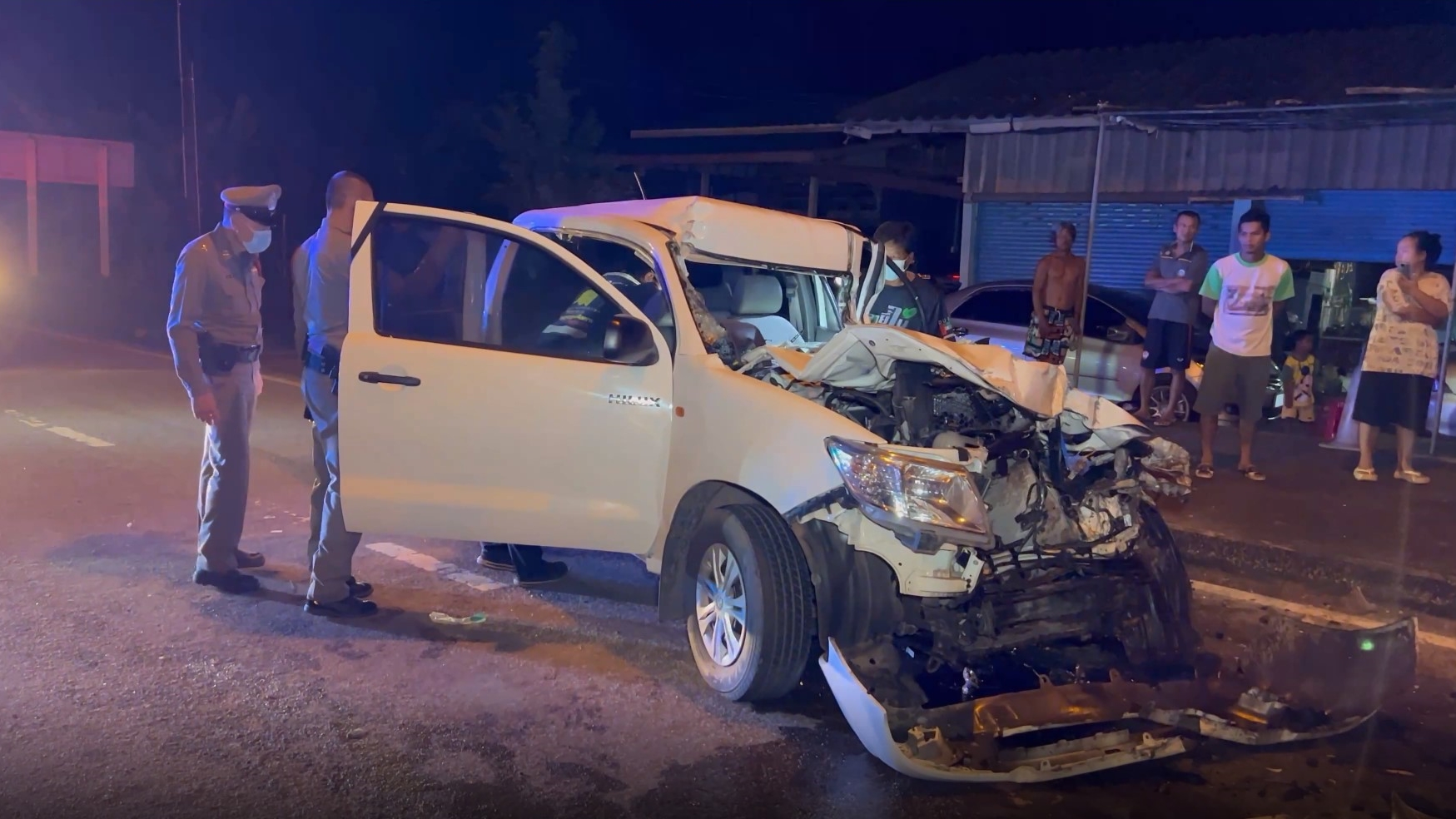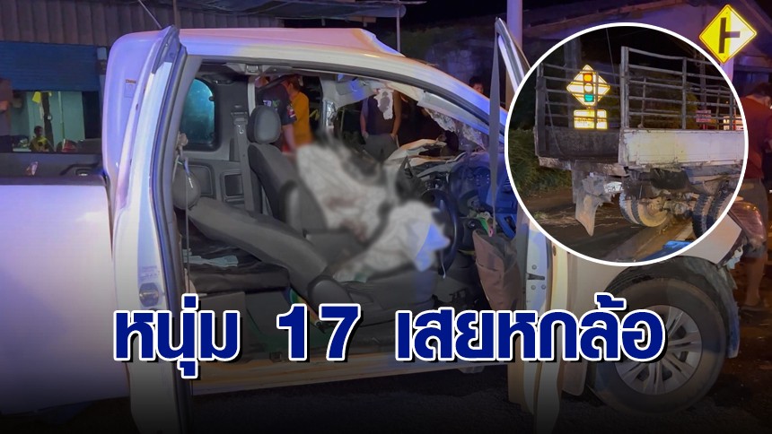 หนุ่มวัย 17 ขับกระบะเสยท้ายหกล้อจอดเสียริมทาง คนขับสาหัสคาซากรถคาดหลับใน