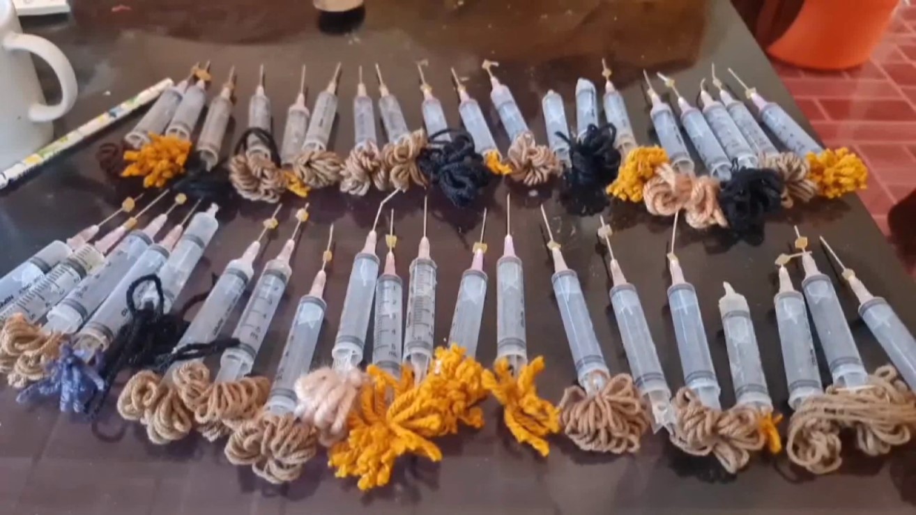 เจ้าหน้าที่วัดเขาหน่อ ตำบลบ้านแดน อำเภอบรรพตพิสัย จังหวัดนครสวรรค์ เก็บไซริงค์หรือกระบอกฉีดยาขนาดต่างๆ กว่า 50 อัน คาดเป็นของกลุ่มลักลอบค้าลิงแอบเข้ามาจับลิงในพื้นที่