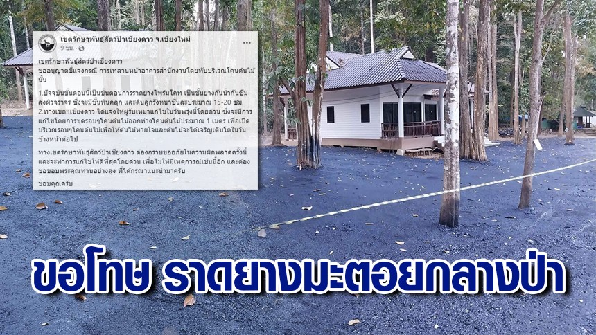 อะไรกันนี่! ราดยางมะตอยกลางป่าเชียงดาว ล่าสุดเขตรักษาพันธุ์ฯ โพสต์ขอโทษ เร่งแก้ไขด่วนที่สุด