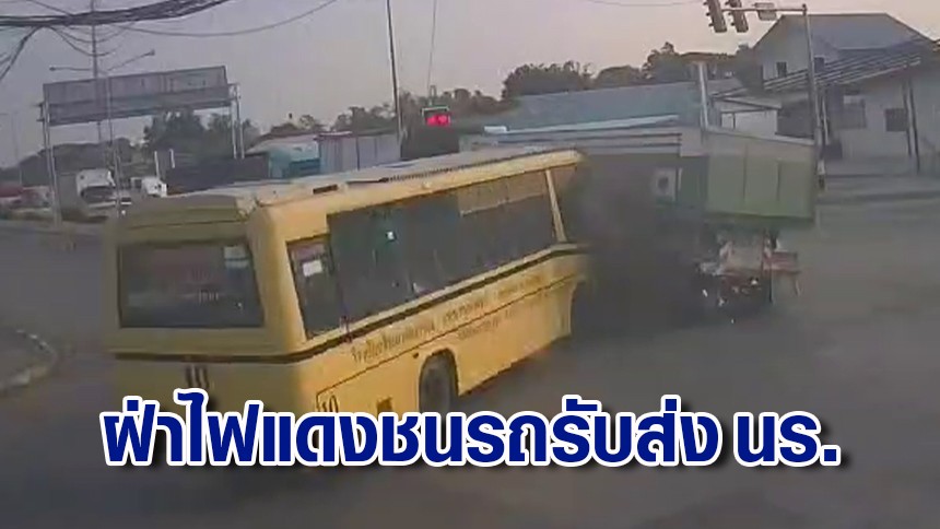 หวิดดับยกคัน! รถบรรทุกพ่วง 20 ล้อฝ่าไฟแดง พุ่งชนรถรับ-ส่งนักเรียน เจ็บ 5 ราย