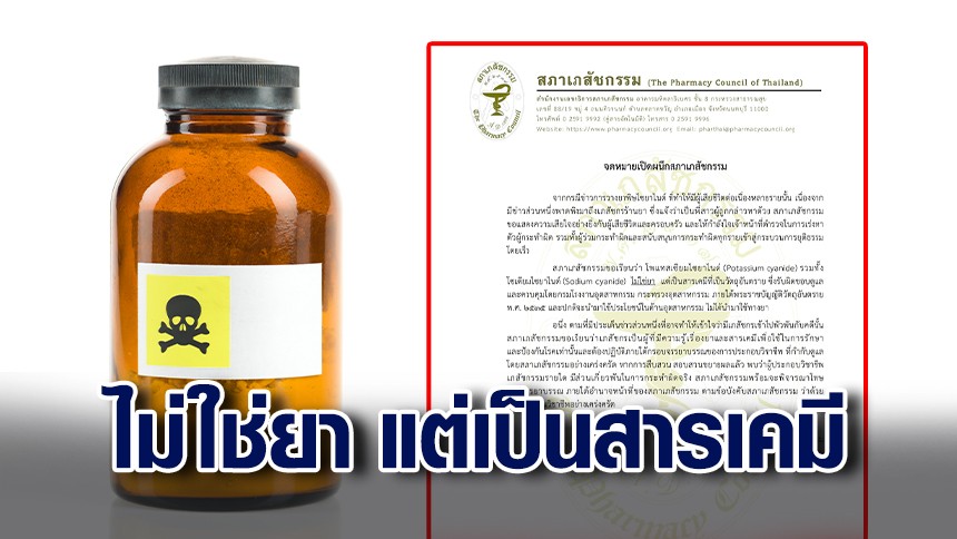 สภาเภสัชฯ แจง ‘ไซยาไนด์’ ไม่ใช่ยา แต่เป็นสารเคมีอันตราย เล็งเอาผิดหากพบเภสัชกรเอี่ยววางยา