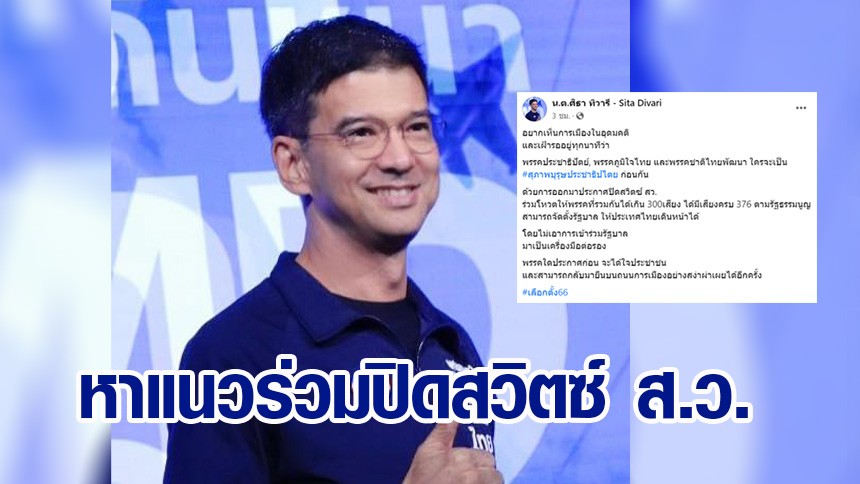 'ศิธา' ชวน 3 พรรค คืนสู่ถนนการเมือง ประกาศปิดสวิตช์ ส.ว.ไร้เงื่อนไขร่วมรัฐบาล