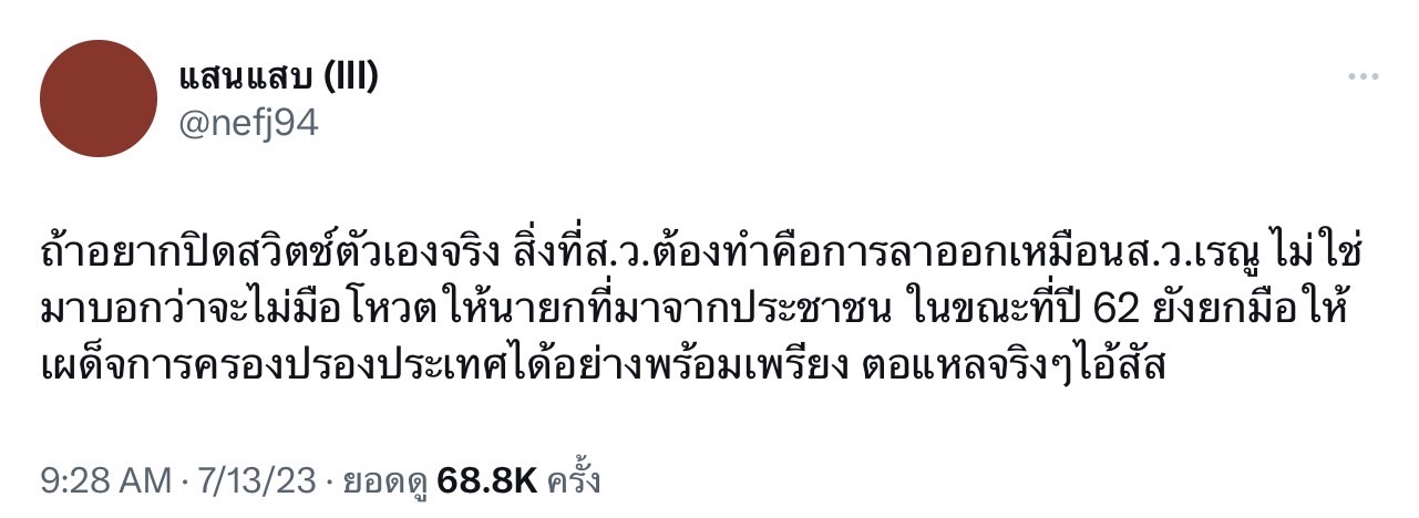 เรื่องนี้ไม่เพียงสร้างความแปลกใจให้แก่สังคม แต่ยังสะเทือนเวทีรัฐสภา เมื่อ 1 เสียงที่ตัดสินใจลาออกในครั้งนี้ ถูกสังคมตั้งคำถามว่า เป็นไปได้หรือไม่… ว่านี่คือการแสดงเจตจำนง ‘การดับสวิตช์ส.ว.’ ของตนเอง เพื่อสะท้อนการทำหน้าที่ โดยเอาประชาชนเป็นที่ตั้ง เพราะโซเชี่ยลต่างพากันชื่นชม และวิพากษ์วิจารณ์เป็นวงกว้างถึงการกระทำของเรณู