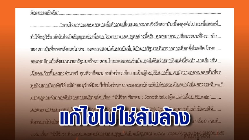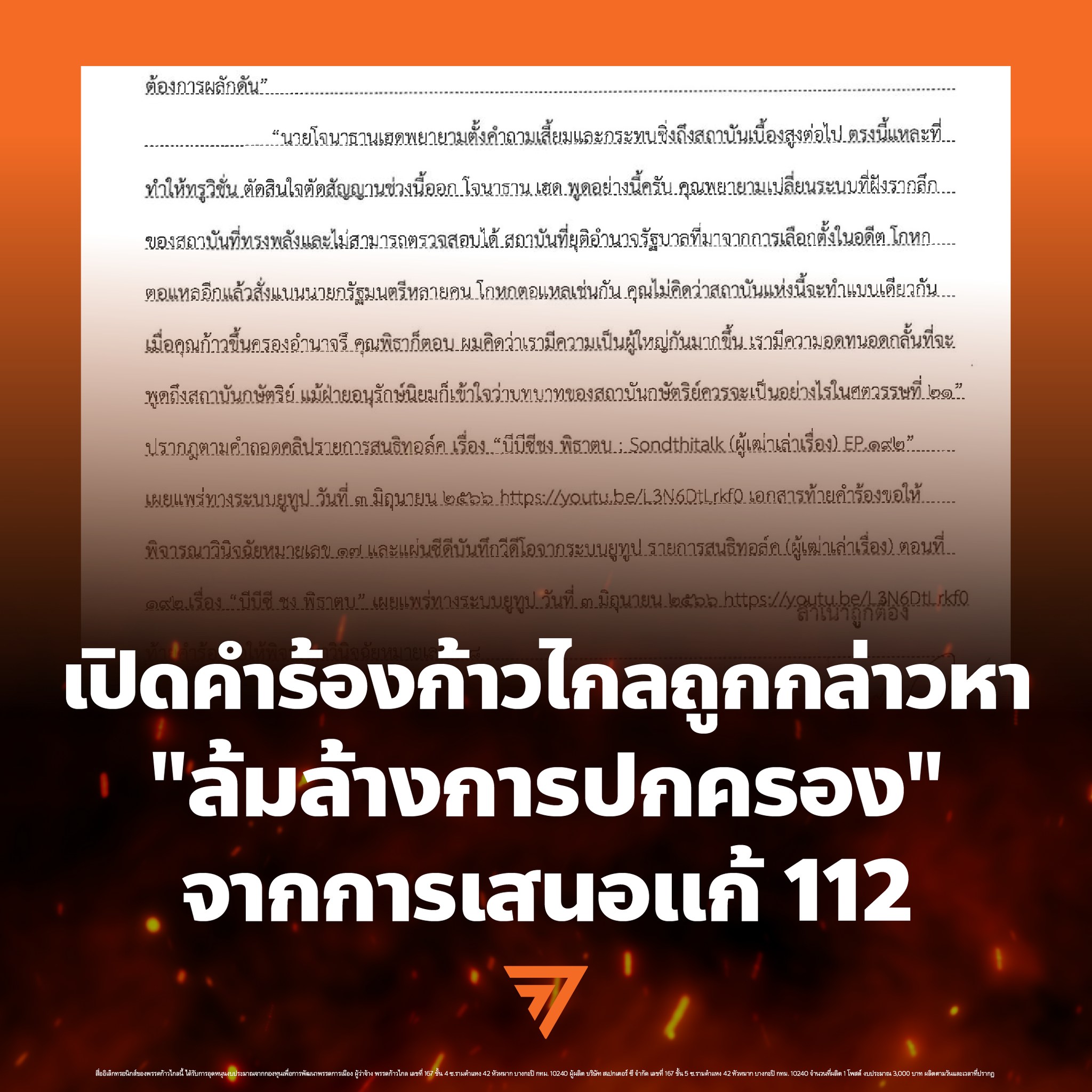 'ก้าวไกล' เปิดคำร้องฉบับเต็ม ถูกกล่าวหา "ล้มล้างการปกครอง" เหตุเสนอแก้ ม.112 ยันแก้ไขไม่ใช่ล้มล้าง