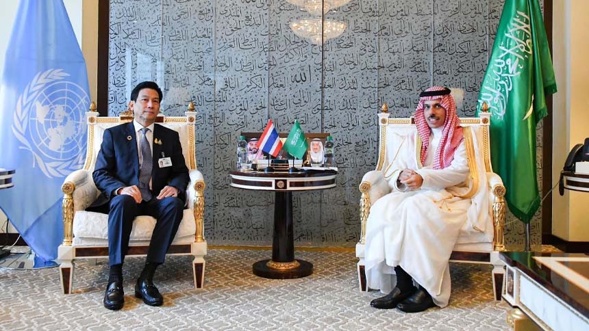 โดยในระหว่างการพูดคุย รัฐมนตรีต่างประเทศซาอุดิอาระเบียทรงชื่นชมประเทศไทยที่ให้การสนับสนุนต่อมติสมัชชาใหญ่แห่งสหประชาชาติที่ได้มีการลงมติเมื่อวันศุกร์ที่ 27 ตุลาคม ปี 2566 โดยมติดังกล่าวเรียกร้องให้ทุกฝ่ายหยุดยิงโดยทันที การหยุดยิงนี้มีขึ้นด้วยเหตุผลด้านมนุษยธรรมจากกรณีที่มีการปิดล้อมฉนวนกาซ่า และขอให้ทุกฝ่ายปฏิบัติตามกฏหมายระหว่างประเทศ บรรทัดฐาน และกฏหมายด้านมนุษยธรรมสากล