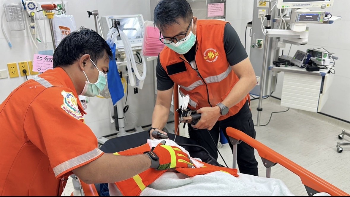 ทางมูลนิธิจึงนำอุปกรณ์เครื่องเครื่องตัดพลาสม่า พร้อมทีมกู้ชีพกู้ภัย ฮุก 31 เข้าสนับสนุน ซึ่งเมื่อไปถึง รพ.มหาราชฯ พบเด็กชายที่ได้รับบาดเจ็บ ชื่อ เด็กชายวันวรุณ คำมิทัน ชาว อ.ห้วยแถลง จ.นครราชสีมา นอนอยู่บนเตียงรถเข็นผู้ป่วย เมื่อตรวจสอบที่บริเวณใบหน้าและดูฟิล์มเอ็กซเรย์ พบว่า ส่วนหัวของลูกดอกยิงหนู เจาะทะลุที่ขมับด้านซ้าย ปักทแยงเยื้องไปทางโหนกแก้ม หวิดโดนลูกตาและสมอง โดยลูกดอกยังปักคาอยู่ โผล่ให้เห็นเฉพาะส่วนก้านและหางลูกดอกเท่านั้น