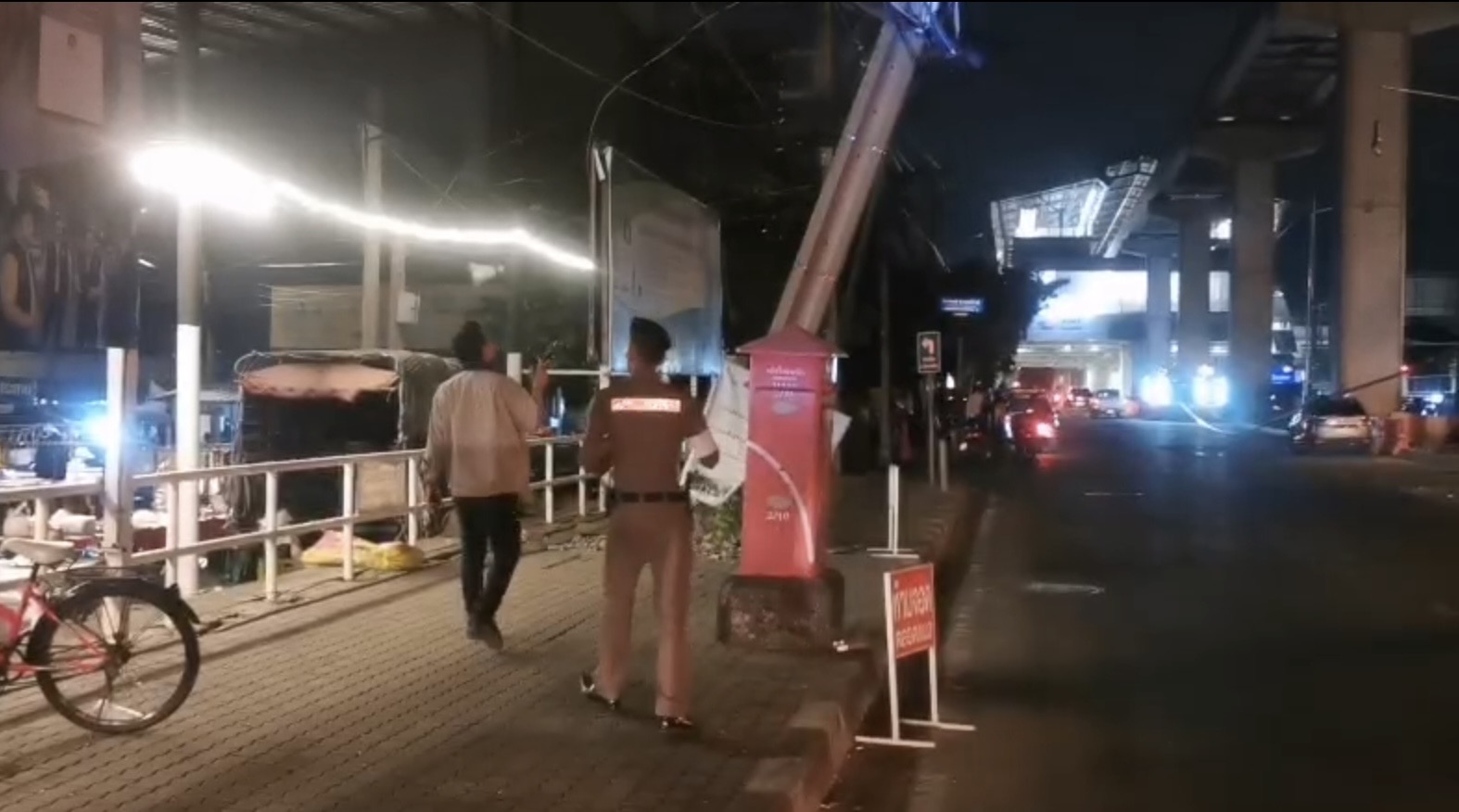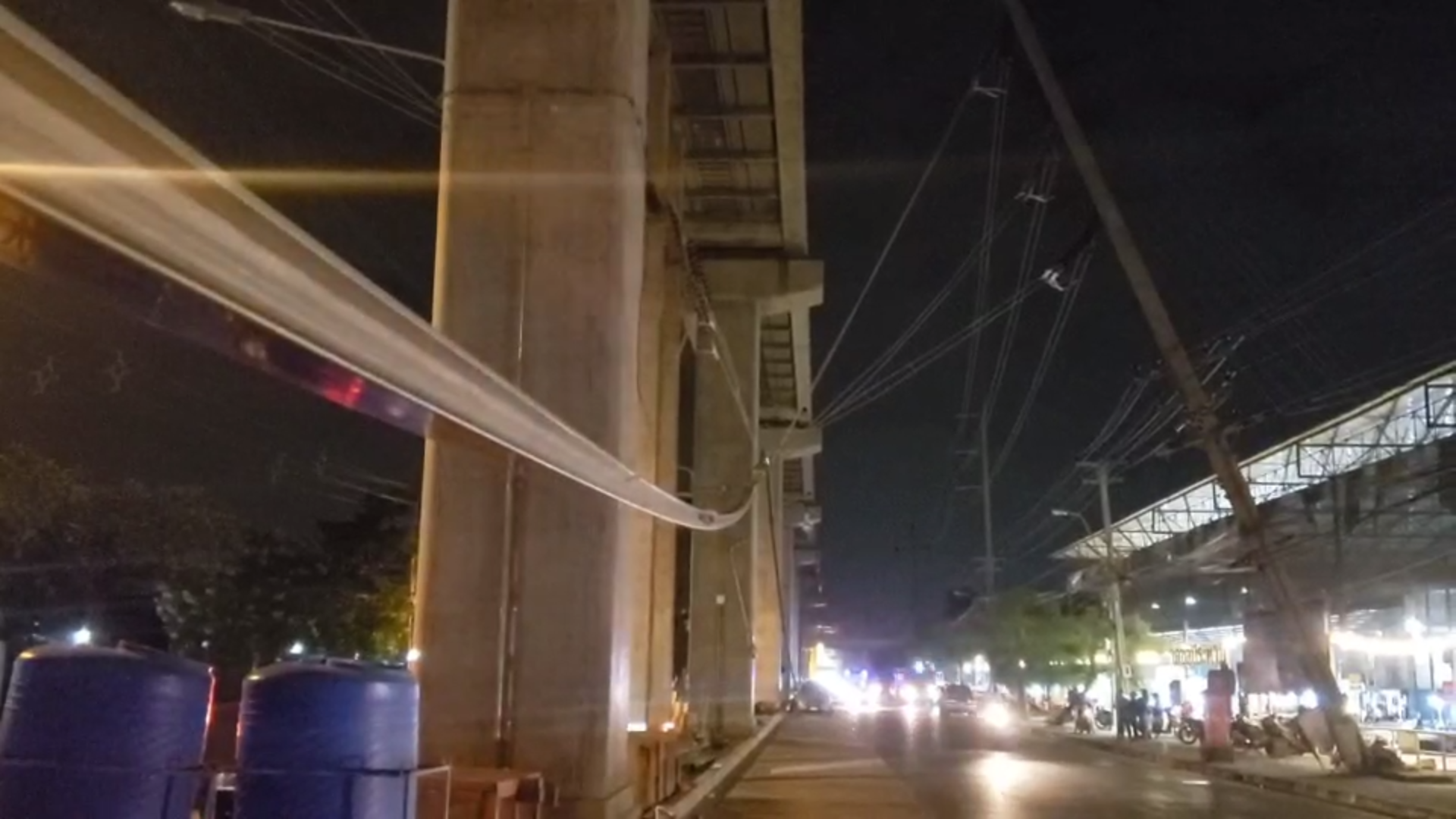 ระทึก เหล็กราง ‘รถไฟฟ้าสายสีชมพู’ ร่วงหล่นใส่รถ 3 คัน เกี่ยวสายไฟจนเสาเอียง 1 ต้น