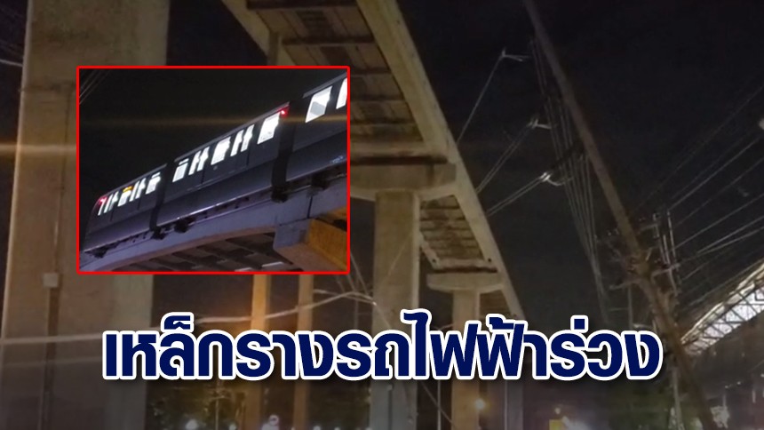 ขณะเดียวกันรางอลูมิเนียมยังหล่นไปโดนสายไฟฟ้าที่พาดผ่านทางจนเหนี่ยวรั้งเสาไฟฟ้าแรงสูงจนหักเอนเอียงใกล้ล้ม 1 ต้น และจากการตรวจสอบพบว่ารางเหล็กดังกล่าวได้หลุดไปถึงแยกแครายเพียงแต่ยังไม่หล่นมาถึงพื้น มีเพียงจุดเดียว บริเวณหน้าตลาดกรมชลประทานที่ตกลงมาใส่รถได้รับความเสียหาย เจ้าหน้าที่ตำรวจต้องปิดการจราจรด้านขวา 1 ช่องทาง โดยขบวนรถไฟฟ้าดังกล่าววิ่งออกมาจากต้นทางที่มีนบุรีเพื่อมุ่งหน้าส่งผู้โดยสารที่สถานีปลายทางแคราย