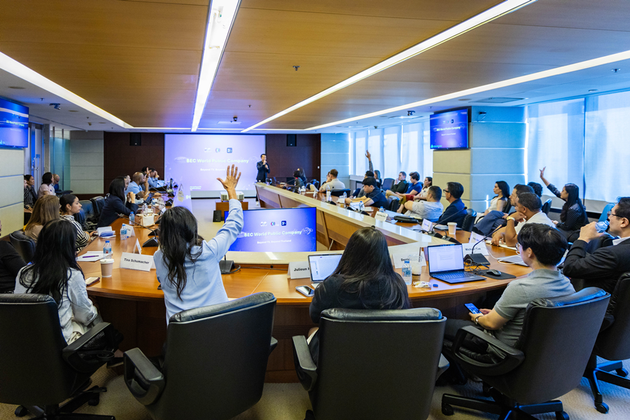 ในการนี้ นายชาคริต ดิเรกวัฒนชัย รองกรรมการผู้อำนวยการ-สำนักกิจการและสื่อสารองค์กร บริษัท บีอีซี เวิลด์ จำกัด (มหาชน) ให้การต้อนรับคณะฯ อย่างอบอุ่น พร้อมบรรยายพิเศษภาคภาษาอังกฤษ นำเสนอภาพรวมการดำเนินธุรกิจของกลุ่มบีอีซี เวิลด์ และสถานีโทรทัศน์ไทยทีวีสีช่อง 3 ครอบคลุมการดำเนินงานในอุตสาหกรรมสื่อโทรทัศน์ไทย กระบวนการดำเนินงานเชิงกลยุทธ์ การพัฒนาอย่างยั่งยืนในธุรกิจบันเทิง การสร้างสรรค์และผลิตคอนเทนต์ที่ตอบโจทย์ผู้ชม ตลอดจนการเผยแพร่ผ่านช่องทางที่มีประสิทธิภาพ ภายใต้กรอบการตลาด กฎหมาย และจริยธรรมทางวิชาชีพที่องค์กรยึดมั่น