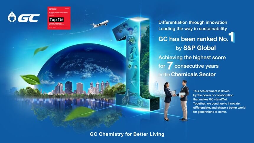 GC คว้าอันดับ 1 จาก S&P Global 7 ปีต่อเนื่อง บริษัทแรกของโลกในกลุ่มธุรกิจเคมีภัณฑ์ ตอกย้ำองค์กรนวัตกรรมที่สร้างความแตกต่างเพื่อความยั่งยืน