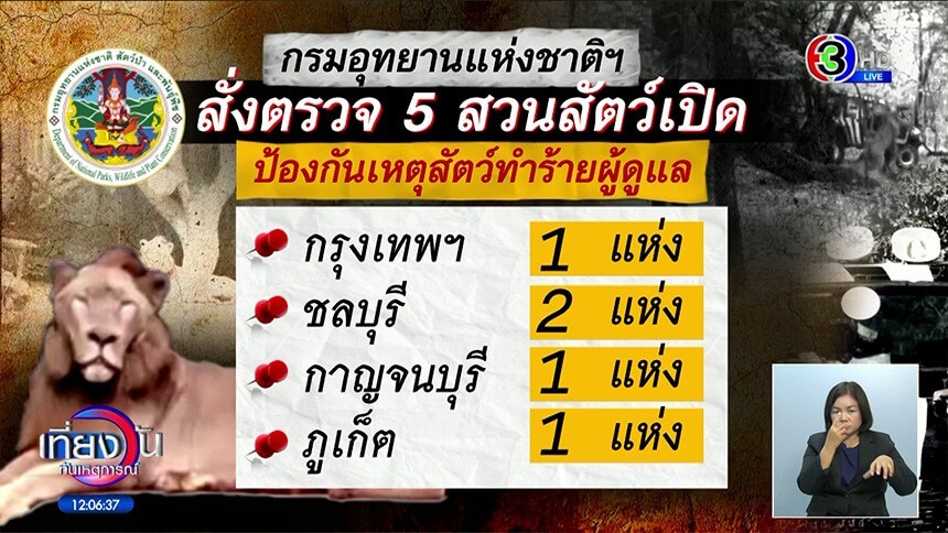 กรมอุทยานฯ สั่งปิดโซนสัตว์ดุร้าย กัก 5 สิงโต ปรับแผนความปลอดภัย พร้อมตรวจอีก 5 สวนสัตว์เปิด