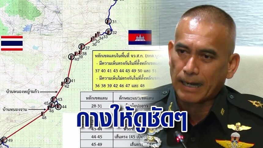 "เสธ.เบิร์ด" กางให้ดูชัดๆ 24 หลักเขตแดนสระแก้ว เห็นตรงกันแล้ว 13 หลัก ซัด "ฮุน มาเนต" ฟ้องโลกกลบเกลื่อนความจริง