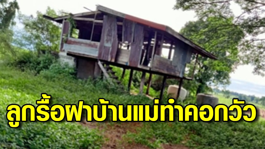 แม่สุดช้ำ ลูกชายขโมยรื้อฝาผนังบ้านไปทำคอกวัว เหลือไว้แต่เสาบ้าน ทำให้แม่ไม่มีบ้านอยู่อาศัย