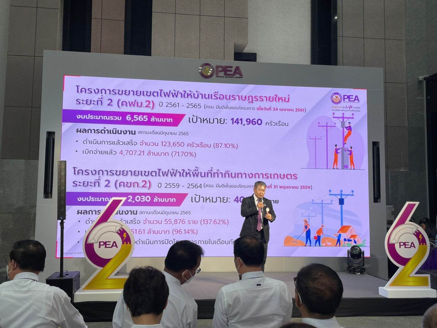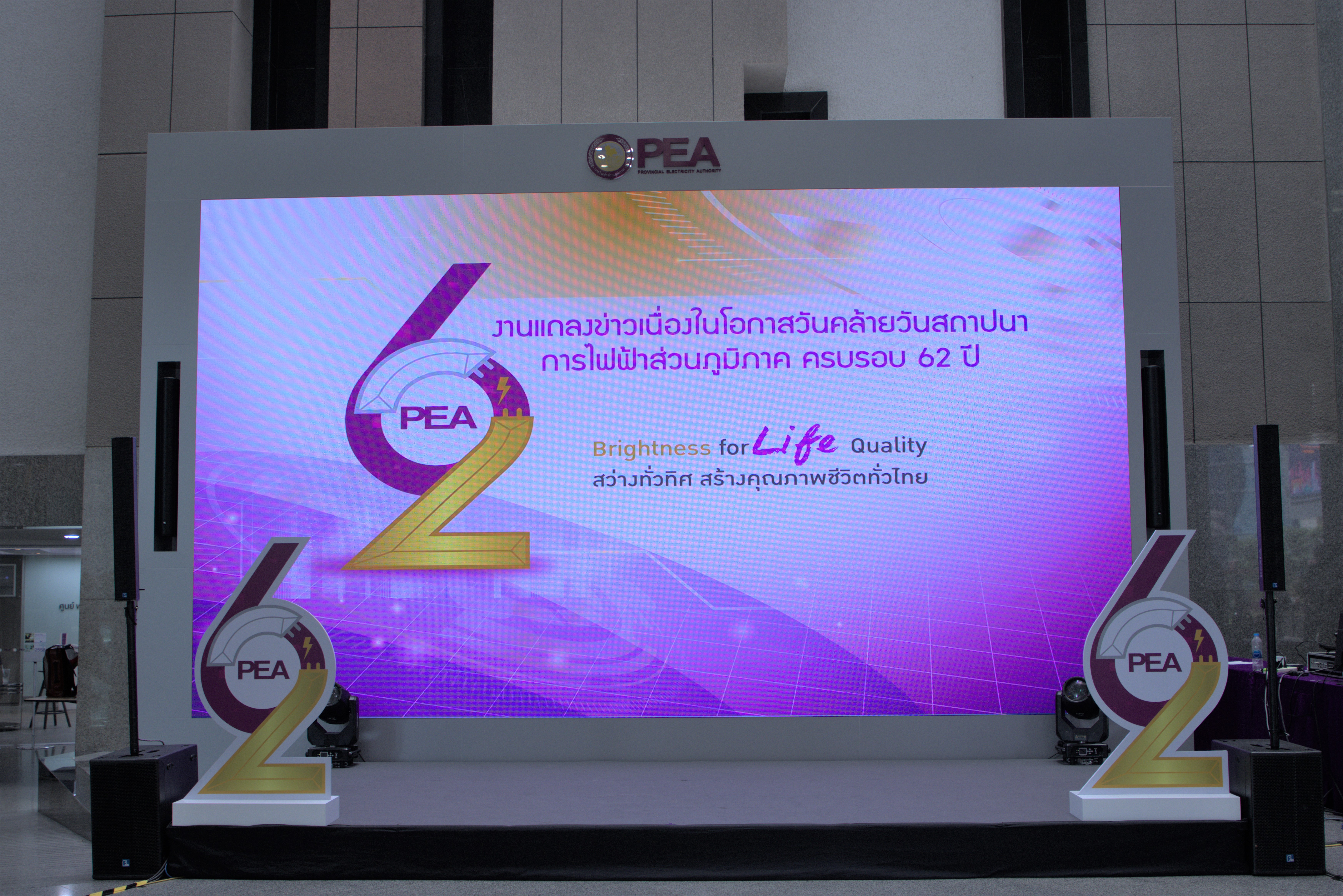 การไฟฟ้าส่วนภูมิภาค (PEA) จัดงานแถลงข่าวเนื่องในโอกาสวันคล้ายวันสถาปนา PEA ครบรอบ 62 ปี ในวันที่ 28 กันยายน 2565 ให้บริการพลังงานไฟฟ้าและดำเนินธุรกิจอื่นที่เกี่ยวเนื่อง เพื่อตอบสนองความต้องการของลูกค้าให้เกิดความพึงพอใจทั้งด้านคุณภาพและบริการ โดยการพัฒนาองค์กรอย่างต่อเนื่อง มีความรับผิดชอบต่อสังคมและสิ่งแวดล้อมและเป็นองค์กรชั้นนำที่ทันสมัยในระดับภูมิภาค มุ่งมั่นให้บริการพลังงานไฟฟ้าและธุรกิจเกี่ยวเนื่องอย่างครบวงจร มีประสิทธิภาพ เชื่อถือได้เพื่อพัฒนาคุณภาพชีวิต เศรษฐกิจและสังคมอย่างยั่งยืน