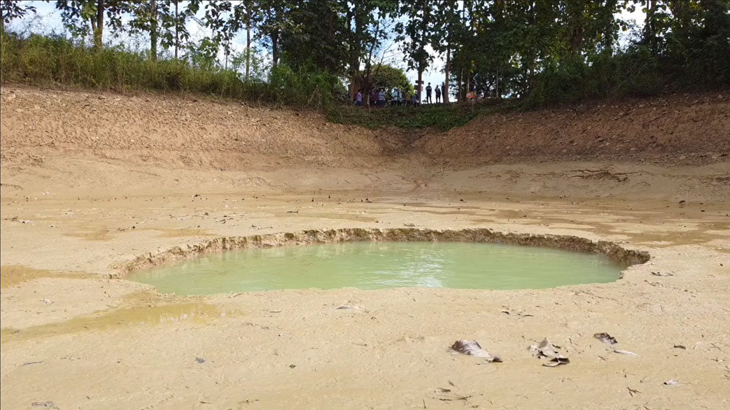 ชาวบ้านผวา หลุมยุบกลางบ่อน้ำ สูบปลา-น้ำหายทั้งหมด เจ้าหน้าที่เร่งตรวจสอบหาสาเหตุ