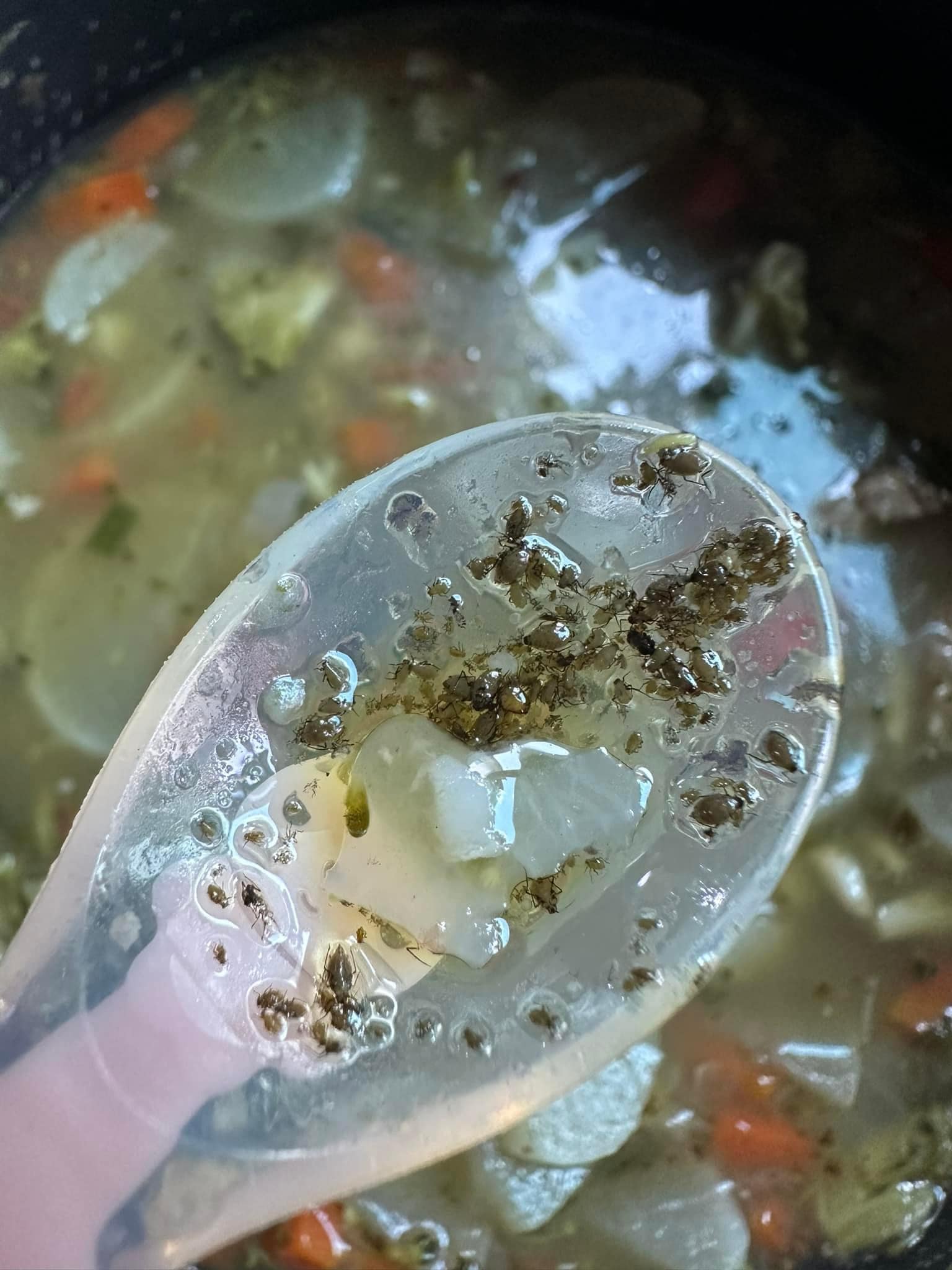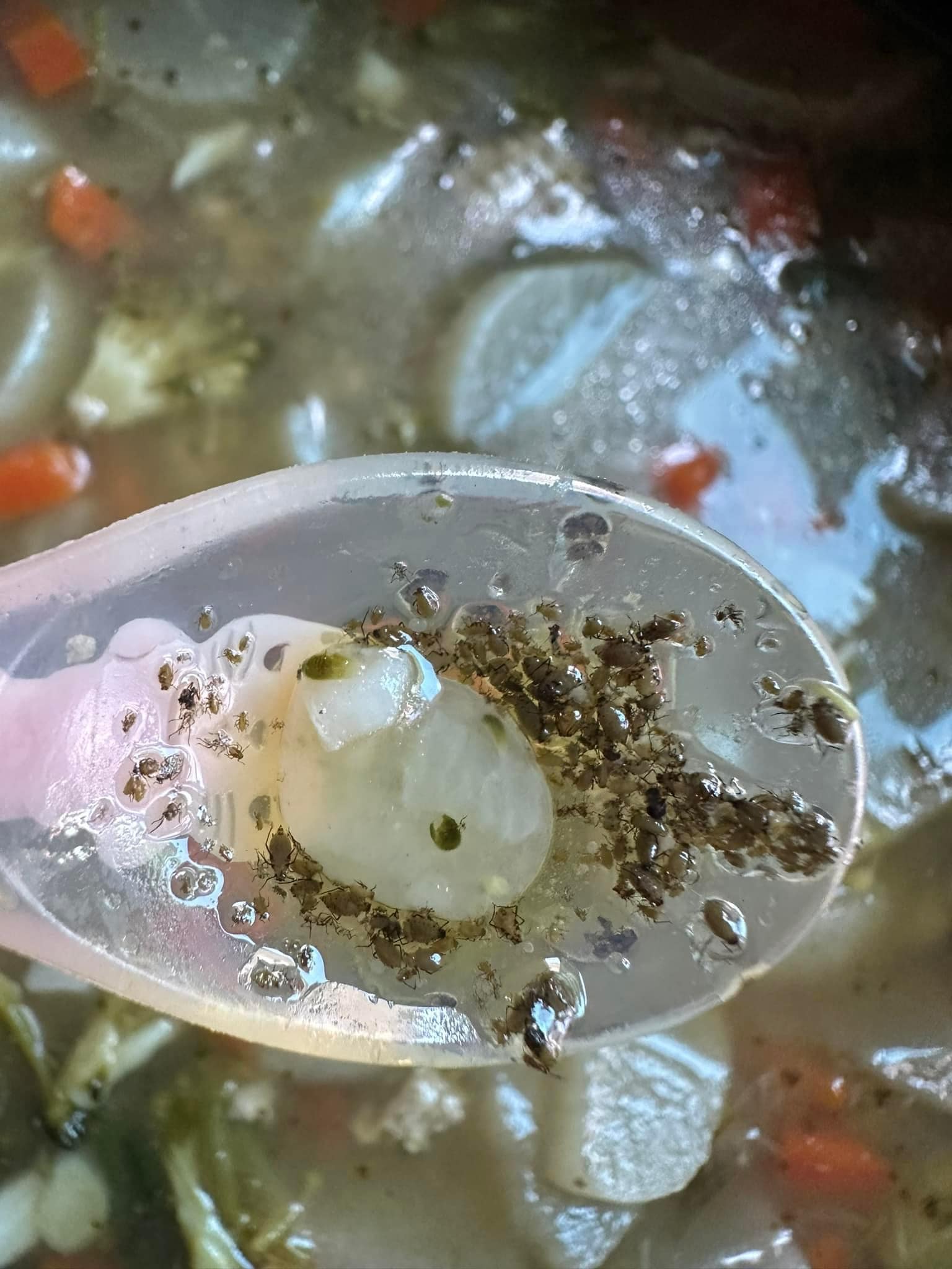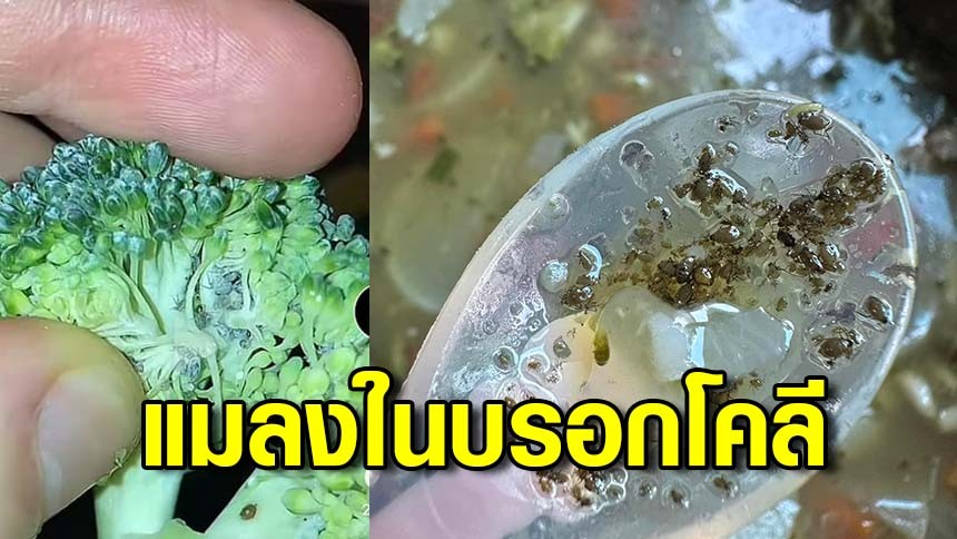 ผู้ใช้เฟซบุ๊กรายหนึ่ง โพสต์ รูปภาพ แกงจืดหมูสับใส่บล็อกโคลี แต่เธอได้สังเกตเห็น แมลงที่อยู่ในบรอกโคลี