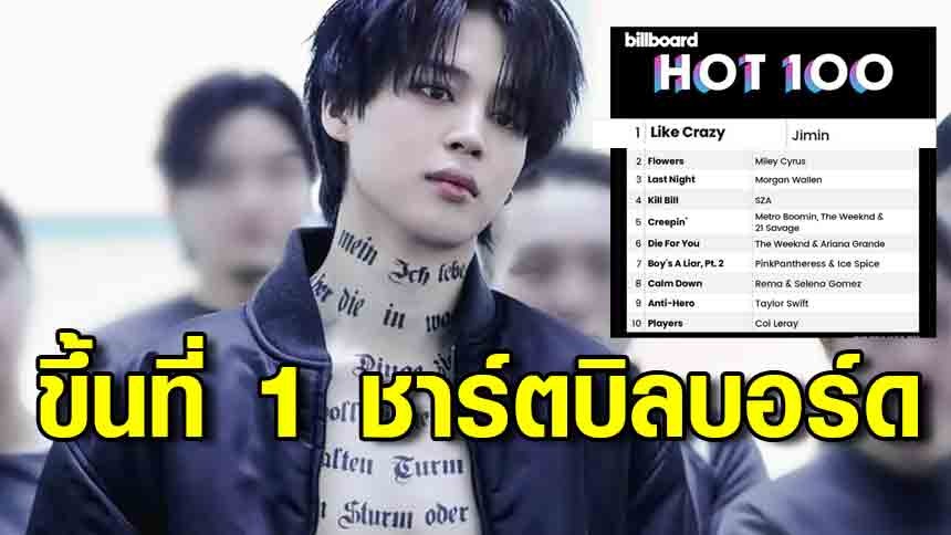 จีมิน BTS ศิลปิน K-pop เดี่ยวคนแรก! เพลง "Like Crazy" ขึ้นที่ 1 ชาร์ต Billboard Hot 100
