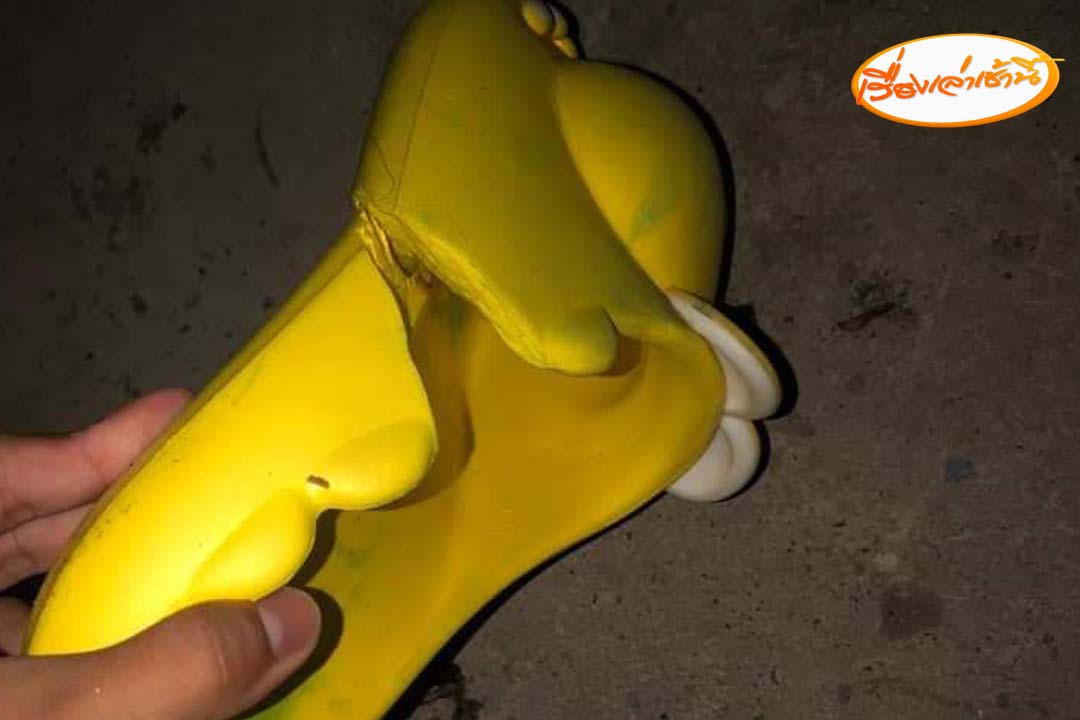 (15 เม.ย.) โซเชียลแซวพร้อมกับเตือนภัย ระวังรองยางลื่นจนดูดเท้าเข้าไป เหมือนกลายเป็นว่ารองเท้าดูดหรือกินเท้าเราเข้าไป โดยเฉพาะถ้าใส่รองเท้าเป็นรูปจระเข้ ทำเอาสร้างสีสันพร้อมกับได้เตือนภัยไปในตัวช่วงสงกรานต์ด้วย