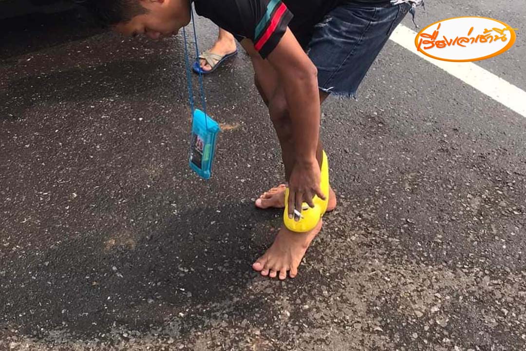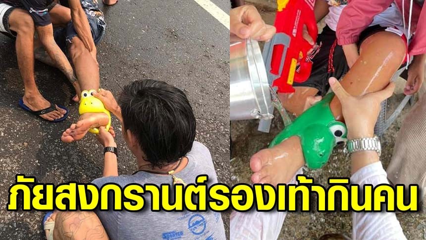 สงกรานต์วันสุดท้าย โซเชียลแซวเล่นน้ำระวังลื่นเจอ "รองเท้ายางกินคน" ดูดไปทั้งเท้า
