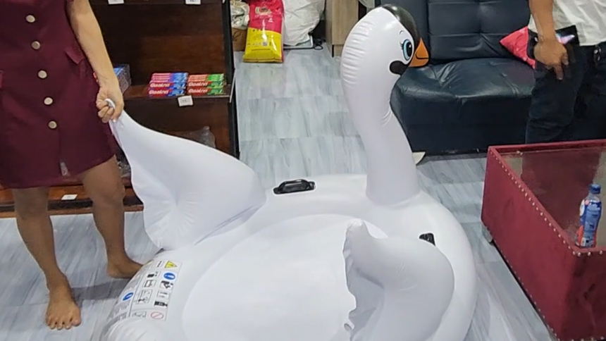 ล่าสุดวันที่ 17 เม.ย. 66 ผู้สื่อข่าวได้พูดคุยกับ น.ส.กมลทิพย์ (สงวนนามสกุล) อายุ 30 ปี เจ้าของพูลวิลลาดังกล่าว ให้ข้อมูลว่า กลุ่มลูกค้าที่แบกเป็ดยางขึ้นโรงพักนั้น เป็นลูกค้าที่เดินทางเข้ามาพัก ตั้งแต่วันที่ 13 เม.ย. 66 เข้าพักเป็นเวลา 2 วัน ก่อนจะเช็กเอาต์ในช่วงเช้าวันที่ 15 เม.ย. 66 ในระหว่างลูกค้าเช็กเอาต์ พนักงานได้ตรวจสอบความเรียบร้อยของทรัพย์สินในพูลวิลลา และพบว่าเป็ดยางสีขาวมีลมรั่วซึม จึงแจ้งให้ลูกค้าทราบ แต่ลูกค้าปฏิเสธว่าไม่ได้เป็นคนทำ ซึ่งทางพูลวิลลาก็ได้คืนเงินมัดจำ จำนวน 2,000 บาท ให้ครบเต็มจำนวน โดยไม่ได้หักเงินค่าปรับ