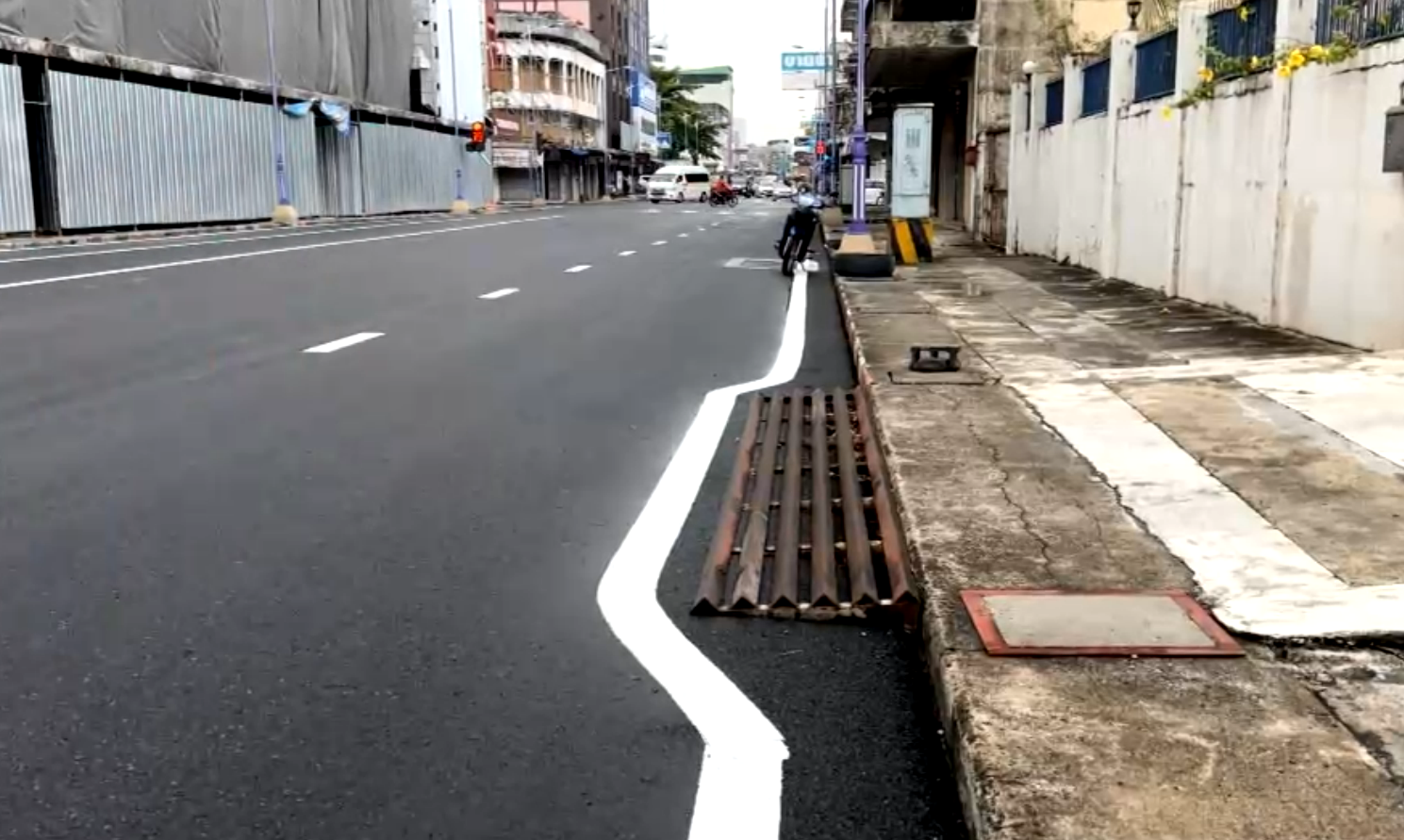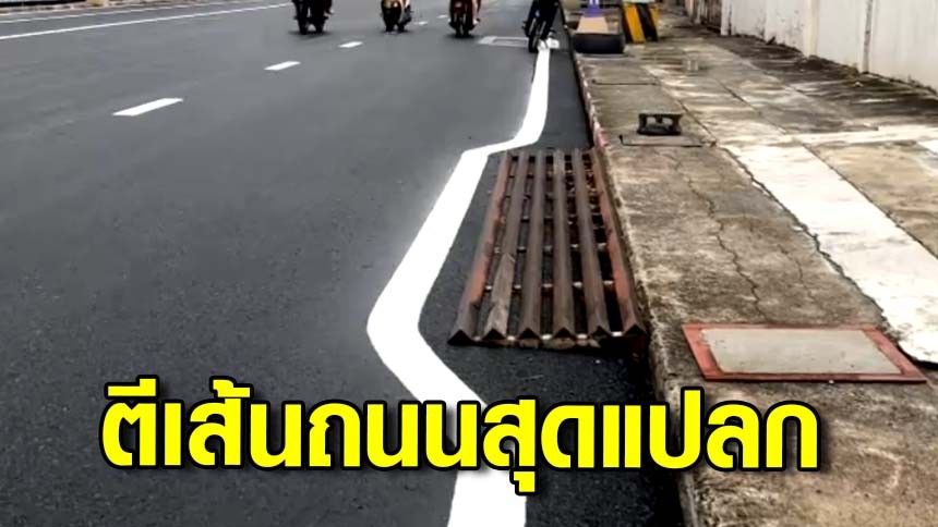 ชาวเมืองหาดใหญ่ งง และขำ ตีเส้นจราจรถนนศรีภูวนารถสุดแปลกอ้อมแผงเหล็กขึ้นทางเท้าจนคดเหมือนงู