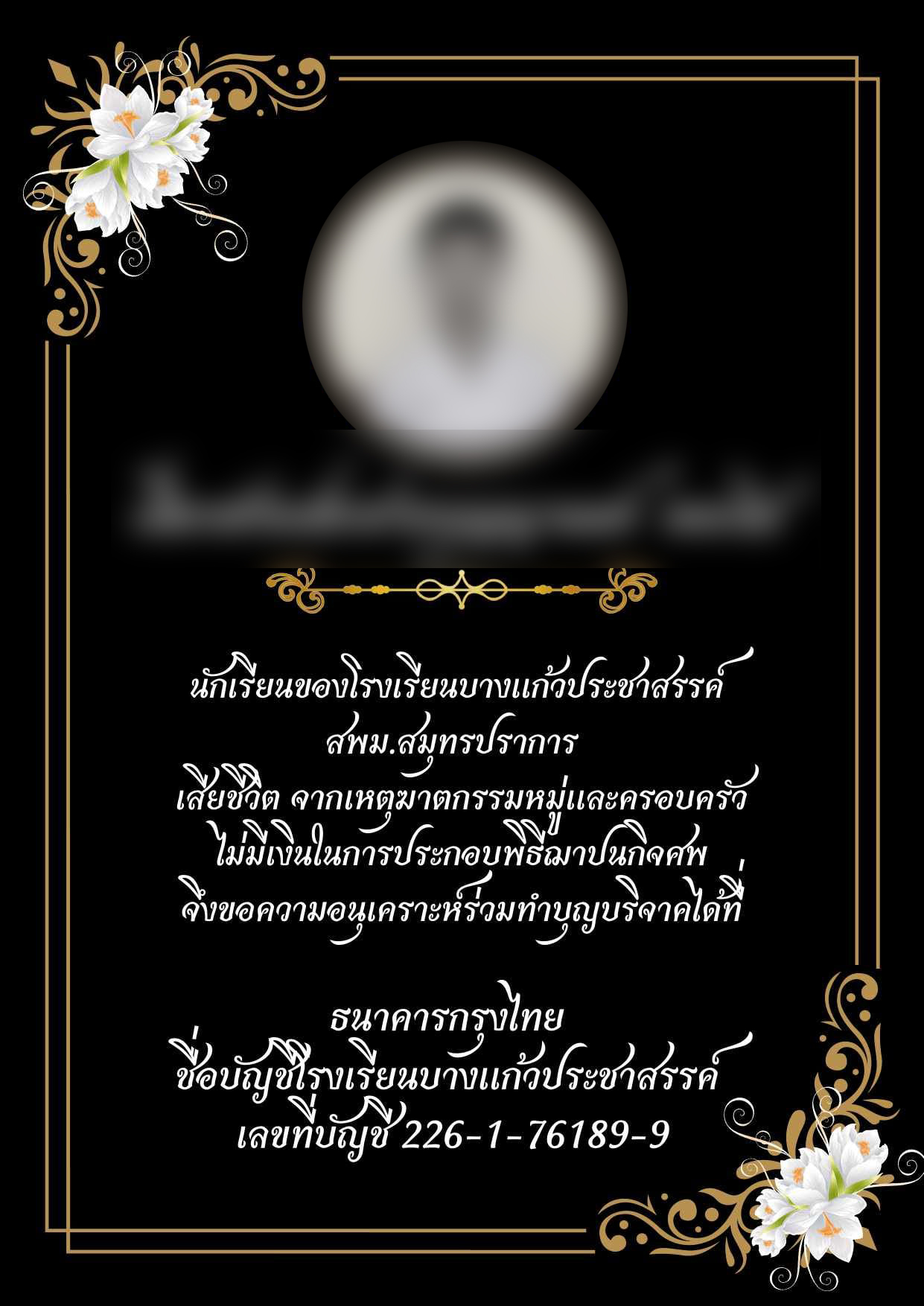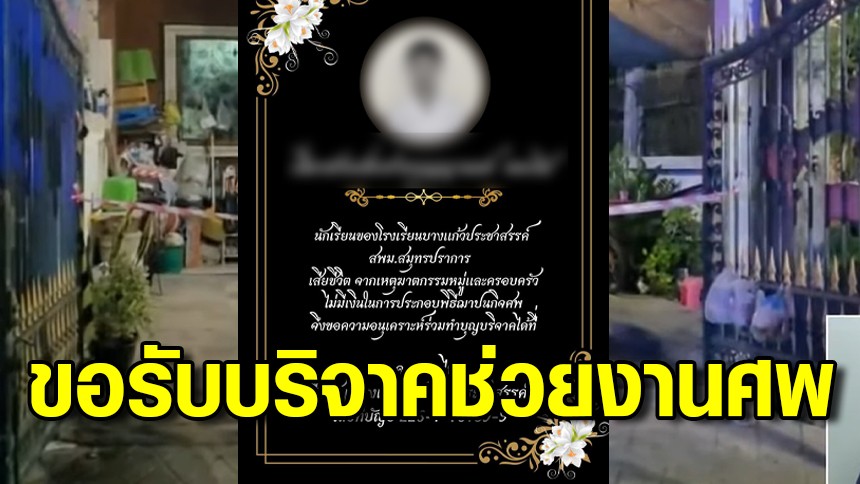 โรงเรียนบางแก้วประชาสรรค์ เปิดรับบริจาคเงินช่วยจัดงานศพนักเรียน เสียชีวิตจากเหตุฆ่ายกครัว