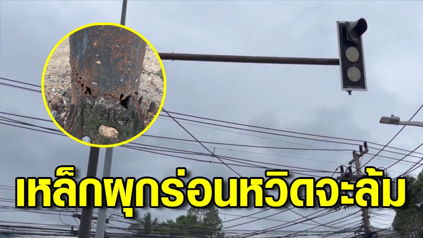 ทำหน้าที่อย่างเต็มที่! เสาไฟจราจรฐานเหล็กผุกร่อน ชาวบ้านวอนซ่อม หวั่นล้มใส่คน
