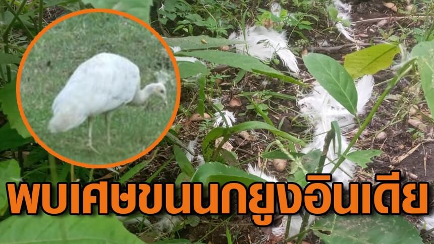 เจ้าหน้าที่ห้วยขาแข้ง พบเศษขนนกยูงอินเดียสีขาว คาดถูกทำร้าย หรือถูกกินโดยสัตว์ผู้ล่า