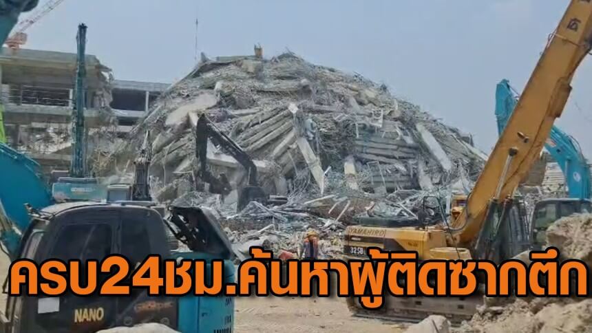 ครบ 24 ชั่วโมงปฏิบัติการค้นหาผู้สูญหาย พบตึกถล่มมีชั้นใต้ดิน ยิ่งเสี่ยงพื้นที่ยิ่งทรุดตัว-เร่งสร้างออกซิเจน หวั่นขาดอากาศ