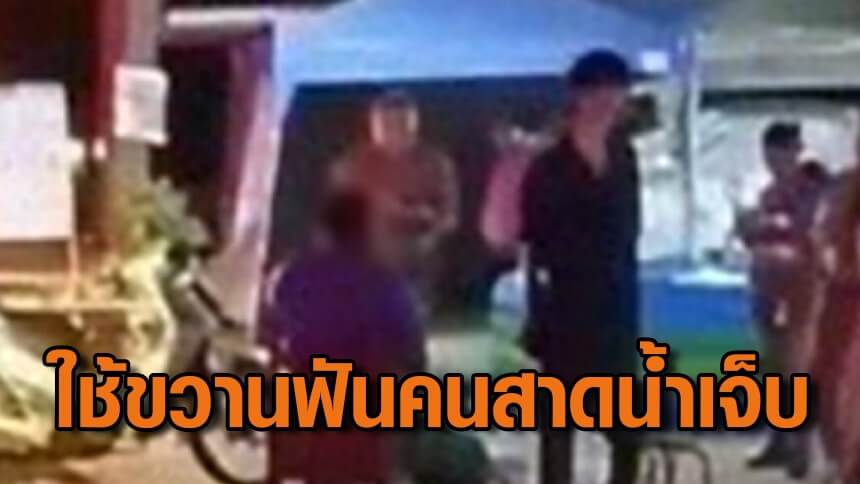 ผ่านไปประมาณ 15 นาที ชายอายุ 50 ปี ขับขี่รถจักรยานยนต์ย้อนกลับมา พร้อมขวานในมือ และเกิดการพูดจาโต้เถียง จากนั้นใช้ขวานฟันกลางศีรษะ ชายอายุ 45 ปีเลือดอาบ โดยไม่ทันตั้งตัว