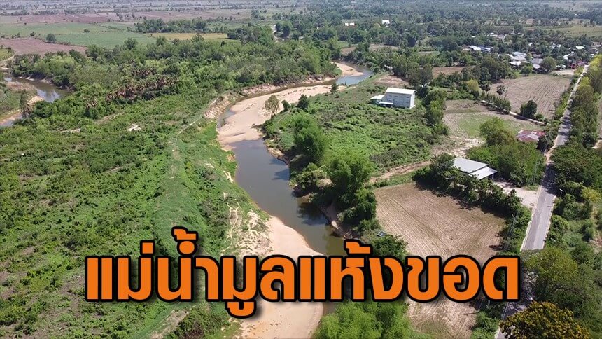 ซึ่งจากภาพมุมสูงจะเห็นว่า ปริมาณน้ำในลำน้ำมูลแห้งขอดเป็นระยะทางยาวหลายกิโลเมตร ชาวบ้านในพื้นที่เริ่มได้รับผลกระทบ ไม่สามารถสูบน้ำขึ้นมาใช้ผลิตน้ำประปา และใช้ทำการเกษตรได้