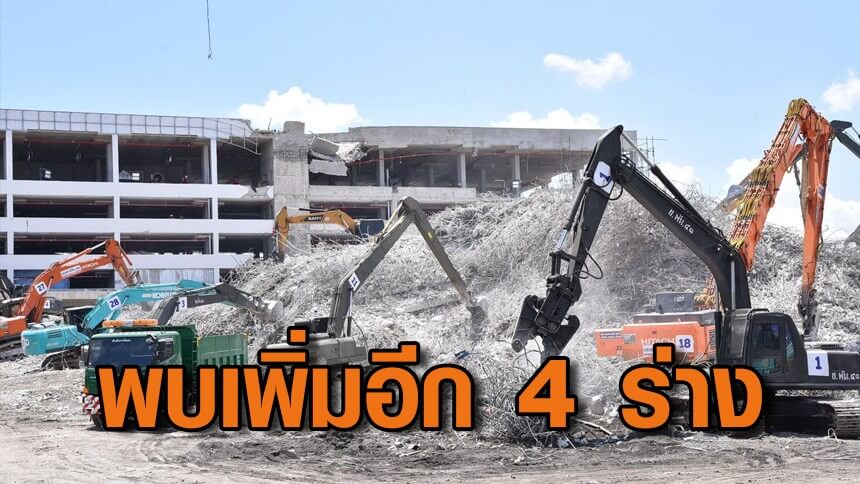 พบร่างผู้สูญหายเพิ่ม 4 ราย ผอ.สปภ.กทม.เผยเร่งทำการรื้อถอน คาดมีแรงงานอยู่ชั้นใต้ดินจำนวนมาก