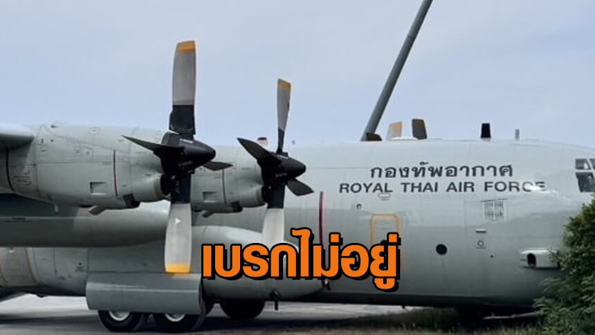 ทอ.แจงเครื่องบิน C-130 ระบบห้ามล้อขัดข้อง ทำเบรกไม่อยู่ ไถลออกนอกลานจอด